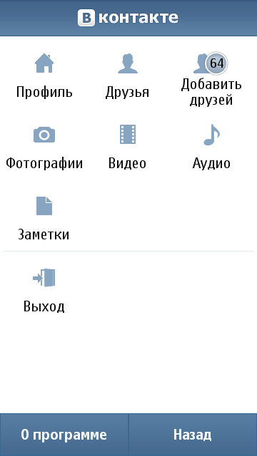 Официальное приложение "Вконтакте", созданное известными разработчиками SPB. По заявлению разработчиков это приложение позволяет не только просматривать новости, переписываться и смотреть фотографии, но и слушать музыку и смотреть видео прямо из контакта в своем смартфоне, что довольно трудно для владельцев S^1. Это программа для сенсорных смартфонов на базе Symbian^1 и Symbian^3. Также эта программа доступна в магазине OVI.