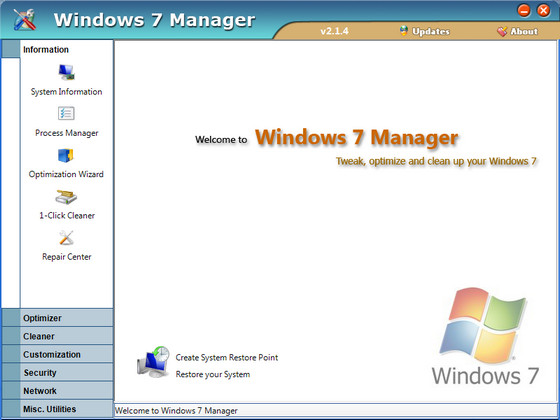 - Information. Get detailed system and all hardware information on your system; show all detailed information of running processes and threads on your machine; Windows 7 Manager offers 1-clicking cleans your system automatically.