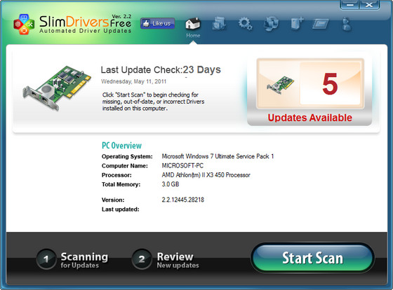 Скачать программу SlimDrivers 2.2.12445 Build 28218 (3,48 МБ):