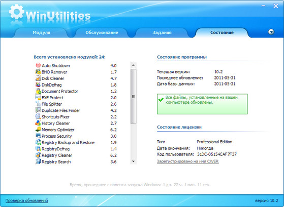 Скачать программу WinUtilities Pro 10.2 Rus (8,2 МБ):
