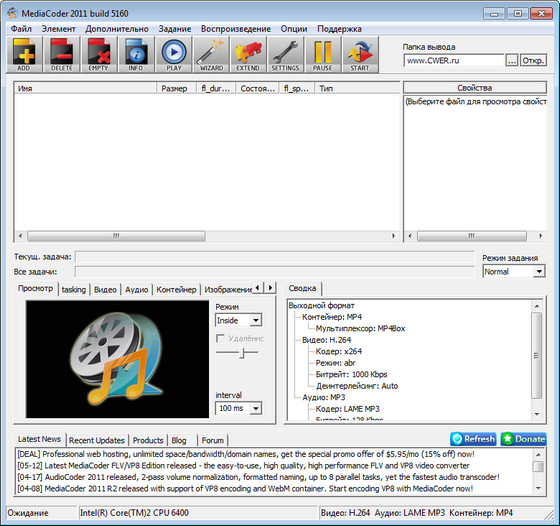 Скачать программу MediaCoder 2011 R6 5160 Final x86 (28,78 МБ):