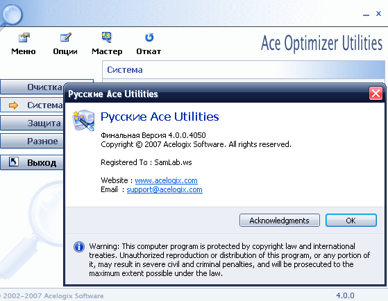 Скачать Ace Optimizer Utilities 4.1.1.4053 Eng (3.7 МБ):
