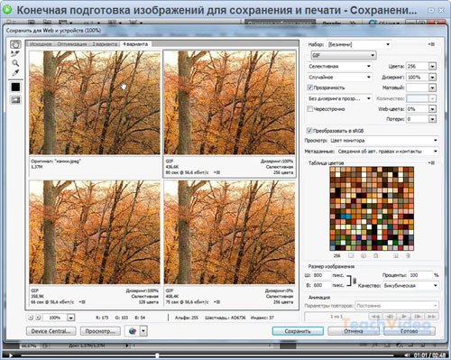 - Сохранение и оптимизация изображения для Web