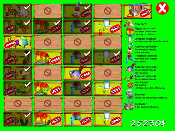 Новый симулятор на манер "Весёлой фермы" и прочих, только трёхмерный. Цель каждого "уровня" - набрать определённую сумму. Для этого надо выполнять заказы на тот или иной продукт. На заработанные деньги можно купить новый вид товара или полезные прибамбасы вроде автополивалки овощей. Огромным минусом игры является то, что вся продукция показывается не на одном экране, и для сбора урожая надо постоянно кликать по иконкам, которые переносят к нужной рассаде.