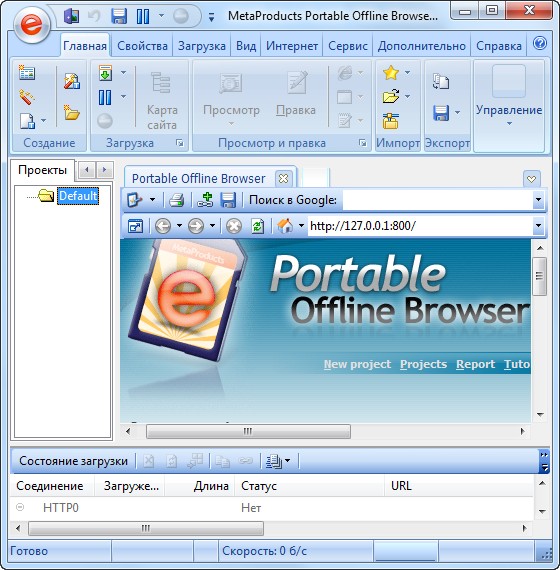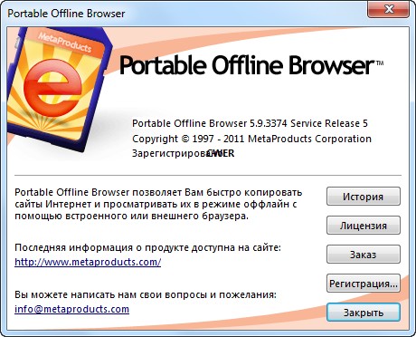 Скачать программу MetaProducts Portable Offline Browser 5.9.3374 SR5 (8,62 МБ):