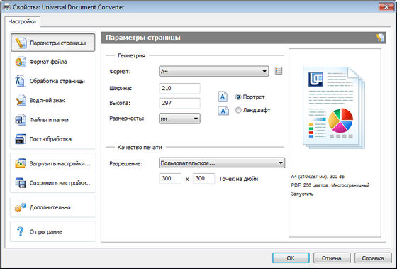 Universal Document Converter – это наиболее полное решение для конвертации документов в PDF, JPEG, TIFF и другие графические файлы. В основе программы лежит технология виртуальной печати, поэтому конвертировать документы в выбранный формат так же просто, как печатать на настольном принтере.
