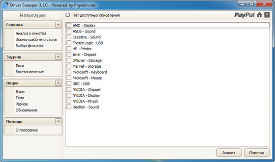 Driver Sweeper - это небольшая и очень полезная утилита, предназначенная для удаления драйверов из системы. Driver Sweeper позволяет удалить все остатки старых драйверов, а также все ключи в реестре, связанные с ними. Очень важно удалить остатки драйверов из системы надлежащим способом, потому что эти оставшиеся от ненужных драйверов файлы и записи в реестре могут причинить проблемы работе компьютера, например, при запуске. В программе Driver Sweeper имеется большое количество возможностей: удаление драйверов от основных производителей, резервное копирование и восстановление, очистка реестра, одновременное удаление нескольких профилей и многое другое. Опции резервного копирования позволяют восстанавливать как драйверы, так и ярлыки к ним на рабочем столе.