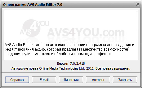 Скачать программу AVS Audio Editor 7.0.2.418 (41,27 МБ):