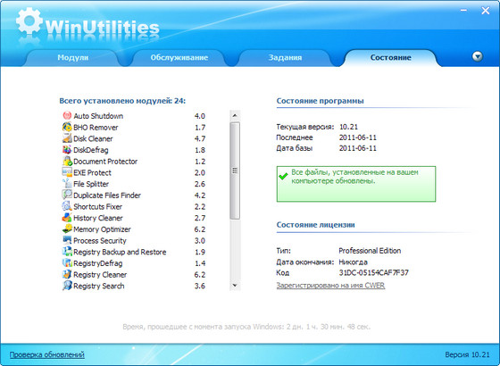 Скачать программу WinUtilities Pro 10.21 (9,1 МБ):