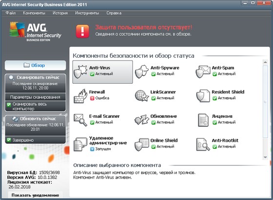AVG Internet Security - мощный пакет приложений компании GrisоfТ для защиты компьютера от всевозможных сетевых угроз: вирусов, троянов, червей, шпионского и рекламного обеспечений, хакеров и спама. В AVG Internet Security входят модули: Anti-Virus, Anti-Spyware, Anti-Spam и Firewall. Программа легка в использовании, имеет функцию автоматического обновления через Интернет и работы по расписанию.Программа AVG Internet Security 2011 имеет несколько уровней защиты, которые обеспечивают безопасность при совершении покупок, работе с интернет-банком, общении в социальных сетях и просмотре веб-страниц.