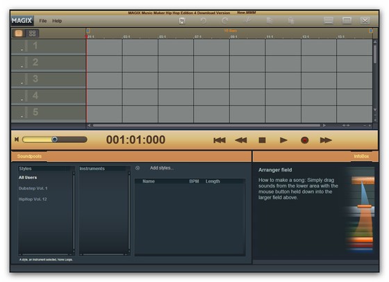MAGIX Music Maker Hip Hop Edition 4 - предоставляет все необходимое для создания своих собственных хип-хоп шедевров. С помощью более 1000 совершенно новых звуков, петель и звуковых эффектов Вы превратите свой компьютер в виртуальную студию звукозаписи и микшерный пульт.