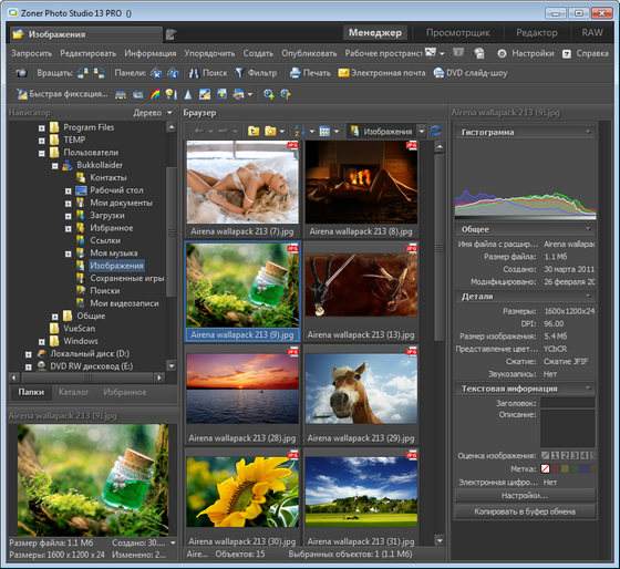 Zoner Photo Studio - это инструмент, который безопасно проведет пользователя через все этапы процесса управления и обработки цифровой фотографии: получение, правка, архивация и публикация. Универсальное решение «все в одном» предоставляет пользователю исключительный комфорт во время работы без необходимости постоянно переходить из одной программы в другую. Профессиональная версия предназначена для всех продвинутых пользователей цифровых фотоаппаратов и сканеров, которые хотят легко, быстро и эффективно обработать свои фотографии. Программа содержит обширный набор инструментов для комплексной обработки цифровой фотографии на компьютере. Ее качества оценит каждый опытный пользователь цифрового фотоаппарата.