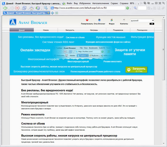 Скачать программу Avant Browser 2011 Build 22 Final (3,21 МБ):