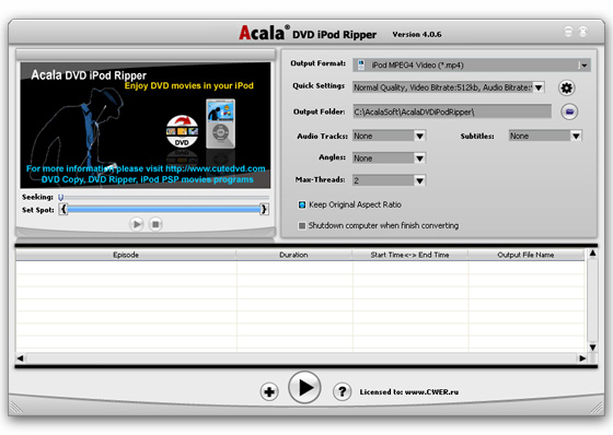 Скачать программу Acala DVD iPod Ripper 4.0.6 (11,27 МБ):