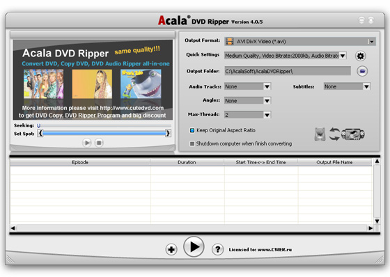 Скачать программу Acala DVD Ripper 4.0.5 (11,72 МБ):