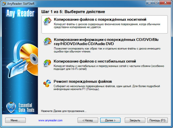 Часто необходимо считать данные с поврежденных "флешэк", дискет, поцарапанных DVD/CD-дисков, ненадежных сетей LAN (Wi-Fi). Обычными средствами это будет сделать, скорее всего, невозможно. Для таких случаев и существует программа AnyReader, которая выручит вас в подобной ситуации и легко прочитает, казалось бы, уже потерянную ценную информацию с любых носителей, которые доступны как буква диска в операционной системе Windows. Продолжение чтения (копирования) данных после возникающих ошибок или потери соединения в сети является уникальной возможностью программы AnyReader.