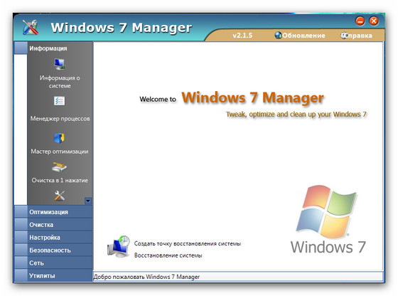 Скачать программу Windows 7 Manager 2.1.5 + Rus (16 МБ):