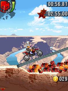 Заводи свой мотоцикл и выполняй десятки сумасшедших трюков в 5 великих местах мира. И отправляйся из большого каньона, в заснеженных горы Аляски или на захватывающую арену в городе, наслаждайся физикой движений и открой несколько режимов игры, такие как игра на время, прыжки с трамплина. Проходи как можно больше и как можно качественней гоночные этапы гонок, что бы открыть тюнинг для своего мотоцикла! Размеры экранов: 128x160, 176x208, 176x220, 240x320, 320x240, 360x640.