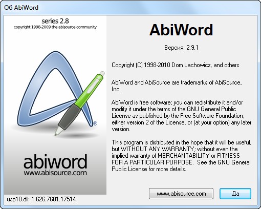 Скачать программу AbiWord 2.9.1 Final (9,29 МБ):