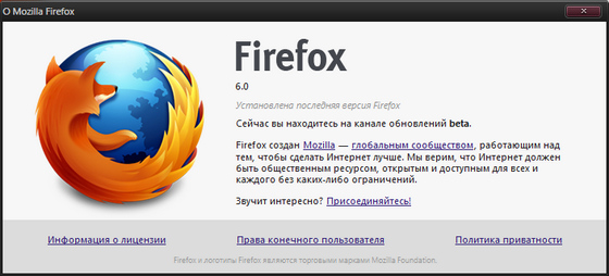 Скачать программу Mozilla Firefox 6.0 Beta 1 (14,28 МБ):
