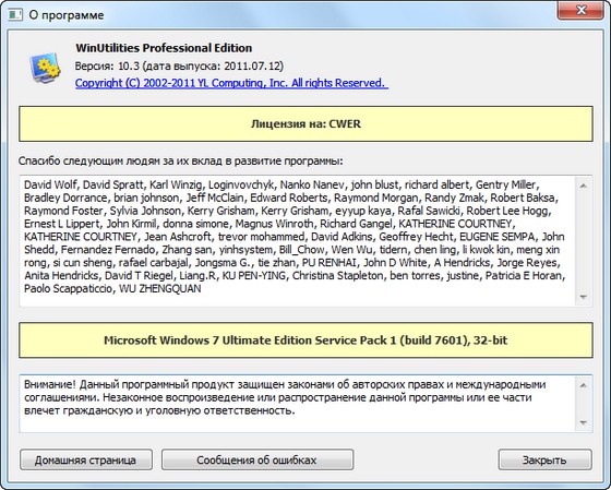 Скачать программу WinUtilities Pro 10.3 (7,22 МБ):