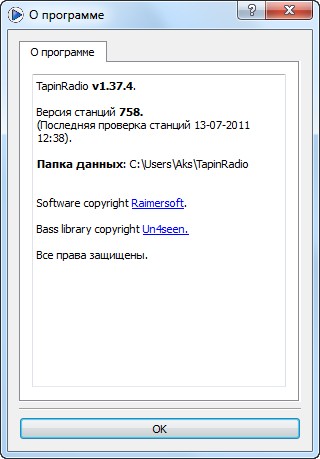 Скачать программу TapinRadio 1.37.4 (8,27 МБ):