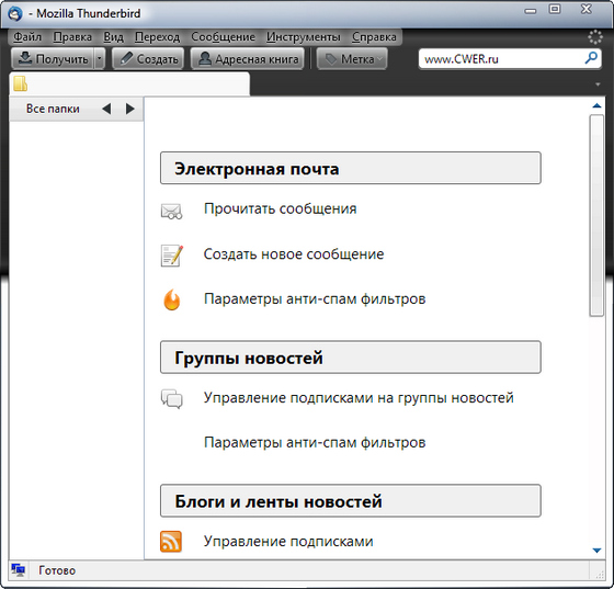 Thunderbird - простая и удобная бесплатная программа для работы с электронной почтой от Mozilla. Программа поддерживает протоколы SMTP, POP3, IMAP и RSS. Имеет встроенный HTML редактор, который создает довольно компактный код, что в свою очередь уменьшает итоговый размер отправляемых писем в несколько раз. Поддерживает всевозможные кодировки, расширяется за счет дополнительных модулей и фильтрует рекламу, а так же нежелательную корреспонденцию. Интерфейс программы основан на технологии XUL, разработанной Mozilla Foundation, в результате чего интерфейс на всех платформах выглядит так же, как у приложений, разработанных для этой конкретной платформы. Интерфейс программы прост и удобен в использовании, поддерживает смену скинов. Во второй версии программы включено множество новых возможностей, помогающих вам лучше управляться с бурным потоком информации, устремляющимся в ваш почтовый ящик и быть в курсе последних событий.
