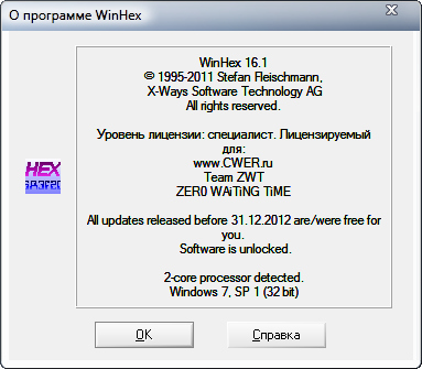 Скачать программу WinHex 16.1 + Rus (2,1 МБ):