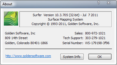 Скачать программу Golden Software Surfer 10.3.705 (45,22 МБ):