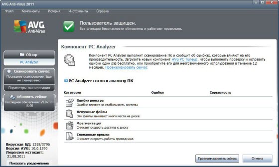 Скачать программу AVG Anti-Virus Professional Edition 2011 v10.0.1390 Final x86 (175,12 МБ):