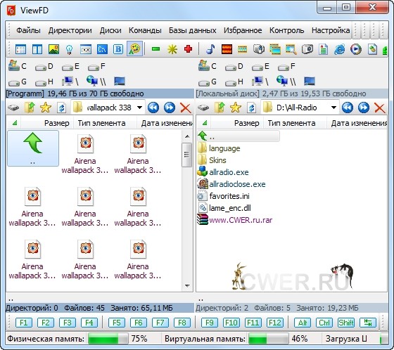 ViewFD - очень легкий, компактный файловый менеджер, по возможностям вполне сравнимый с Total Commander, но при этом бесплатный. ViewFD имеет встроенные средства для просмотра файлов, понимает распространенные текстовые форматы, среди которых есть RTF. Присутствует также просмотрщик изображений, который обладает возможностью их редактирования.
