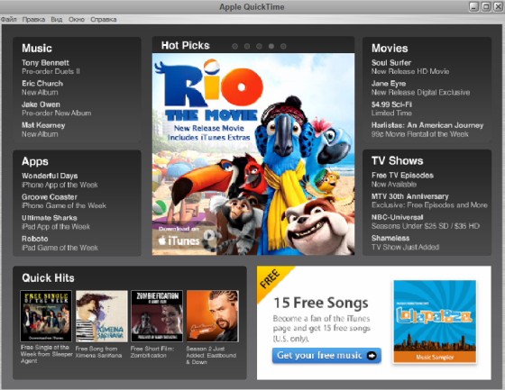 - Переработанный путеводитель контента. Новый путеводитель контента QuickTime обеспечивает доступ к новейшей информации в мире развлечений в сети Интернет.