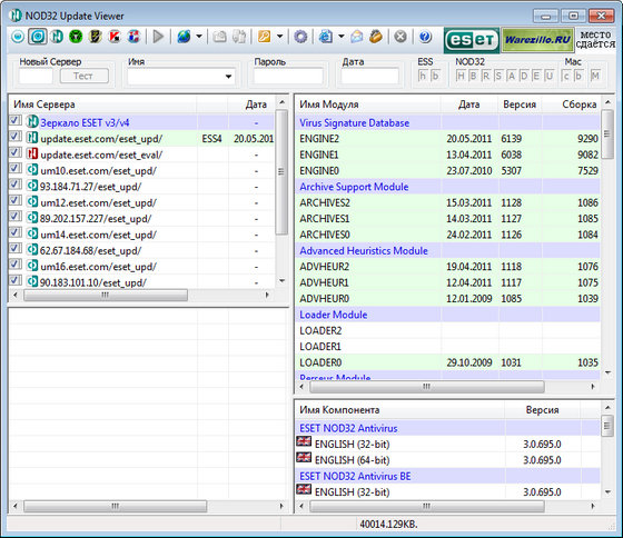 - Показывает содержимое обновлений на всех серверах компании Eset и их зеркалах.