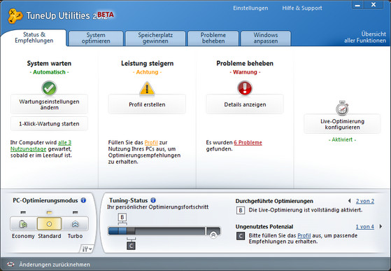TuneUp Utilities предлагают Вам два новых метода оптимизации, которые гарантируют оптимальную работоспособность даже при высокой загруженности компьютера. В случае необходимости, быстродействие будет увеличено или ускорится процесс запуска программы.