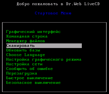 Dr.Web LiveCD загружается в одном из двух режимов:
