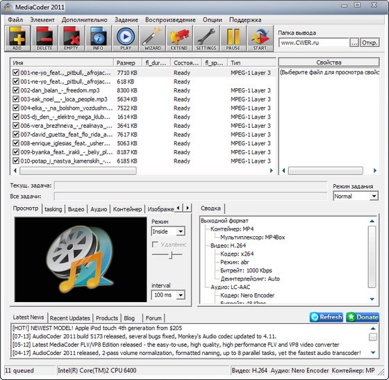 Скачать программу MediaCoder 2011 R8 5183 x86 (30,25 МБ):