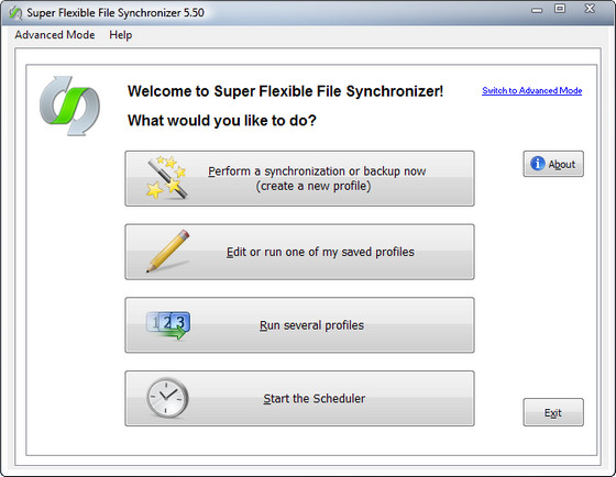 Super Flexible File Synchronizer - очередное обновление мощного приложения для синхронизации и резервного копирования файлов. Программа поддерживает синхронизацию с серверами по FTP протоколу, работает с zip архивами, поддерживает кодирование данных, есть встроенный планировщик. На Windows NT/2000/XP, планировщик может запускаться как служба - без необходимости входа в систему. Приложение позволяет сохранять параметры настройки во множественных профилях, позволяет задавать фильтры и маски для определения точных условий синхронизации. Smart функция позволяет временно пропустить файл, запущенный каким-то приложением, чтобы приступить к синхронизации позднее. Минимальная нагрузка CPU.