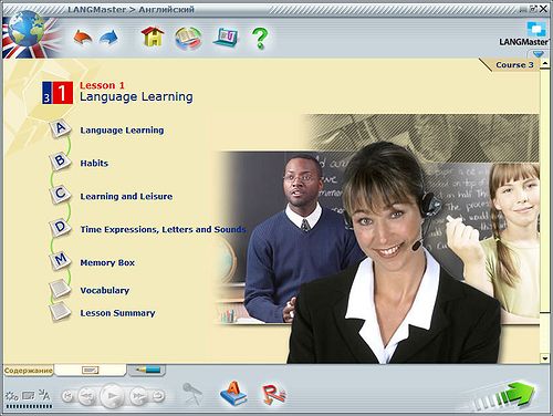 Курсы LANGMaster являются самым популярным средством изучения иностранных языков на ПК. Не только благодаря качеству учебного материала, но и уникальным функциям обучения. Курс включает в себя технологию IBM Via Voice для распознавания речи, метод RE-WISE для эффективного изучения новых слов, метод Click&See и Say&See для мгновенного перевода слов на русский. Курс содержит 5 уровней - от начального до продвинутого.