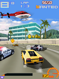 Третья версия самой популярной гонки на мобильном телефоне! Благодаря непревзойденной трехмерной графике вы погрузитесь в самое сердце мира гонок. Все самое-самое в экстремальной езде: преодолевайте заносы, сталкивайте соперников в кювет, не оставляйте шансов полиции и ждите, пока телешоу начнут вас снимать с вертолетов. Неслыханное разнообразие: 14 дорог в семи городах мира; 9 машин и 3 мотоцикла можно выбрать из каталогов известных производителей.