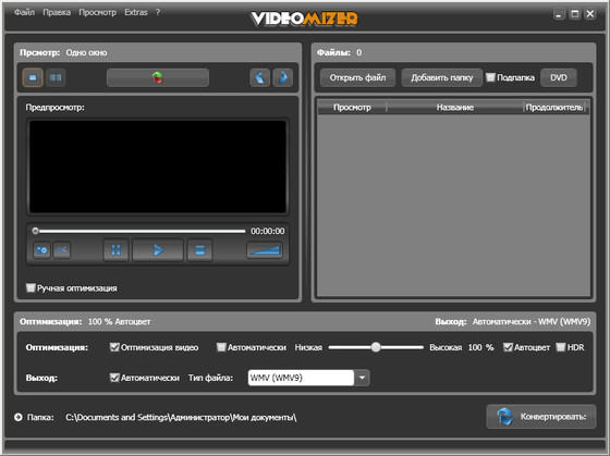 Videomizer - программное обеспечение, предназначенное для автоматизированной видеообработки изображений, оптимизации домашнего и другого видео, а также конвертирования в различные форматы.