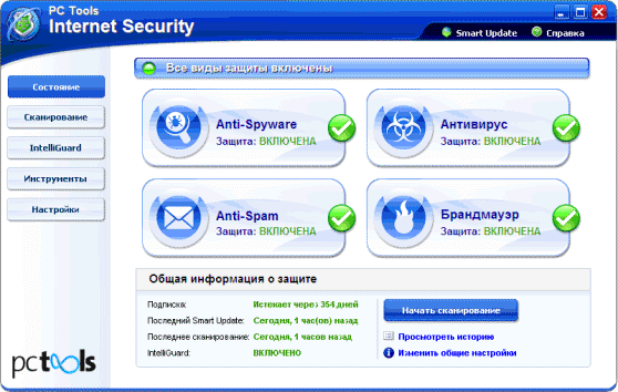 • Эффективная защита от программ-шпионов. В PC Tools Internet Security входит Spyware Doctor, мировой лидер антишпионских программ.