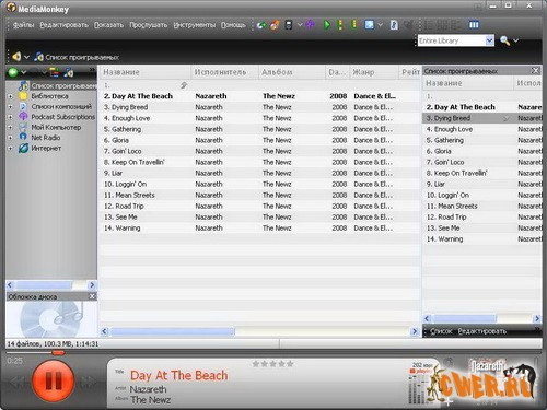 Программа, предназначенная для ведения базы данных музыкальных файлов. Данная утилита позволяет собрать все музыкальные композиции в единый каталог. Обладает широкими возможностями: поддержка скинов, конвертер аудио форматов, встроенный CD-ripper и CD-burner.