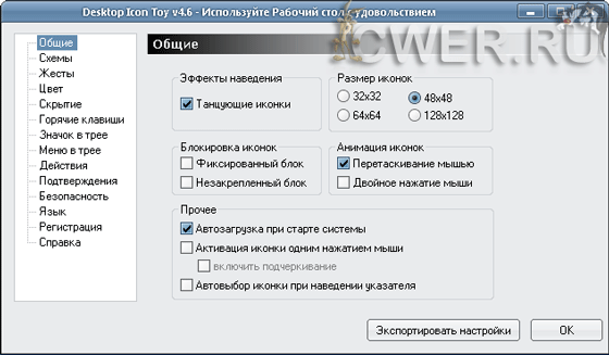 • Сохранение позиции иконки на рабочем столе
