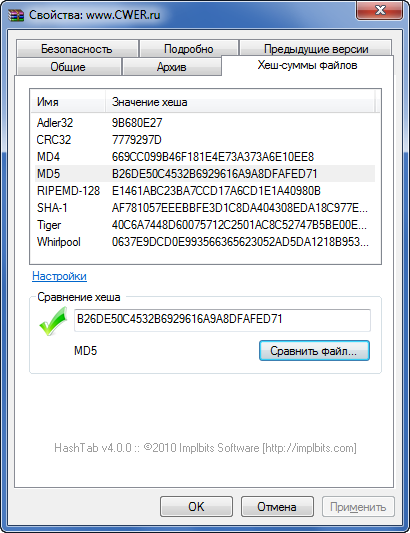 Скачать утилиту HashTab 4.0.0.2 (1,1 МБ):