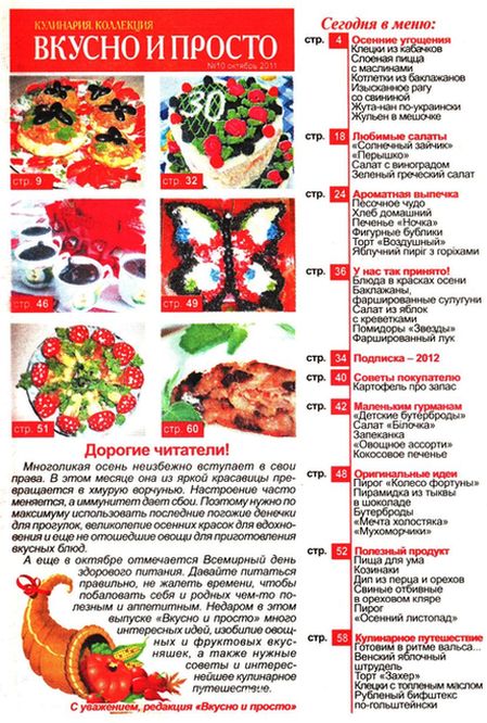 Журнал «Вкусно и просто» предназначен для тех, кто хочет правильно питаться, кто любит баловать себя и родных чем-то полезным и аппетитным, поэтому в каждом номере много интересных идей, вкусных рецептов, нужные советы и интересные кулинарные путешествия.
