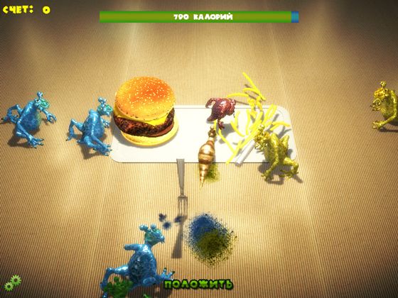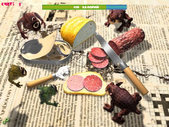 Увлекательная игра по истреблению кухонных монстров, пытающихся сьесть все, что плохо лежит. Весело провести время помогут отличная 3D графика, регдолл физика, динамичный геймплей и толпы разнообразных монстров. Оружием может быть все что угодно - ложка, вилка, мухобойка, банан, и даже мертвые монстры. Ударим же по коварным попыткам наглых разноцветных мутантов лишить нас любимого фастфуда!
