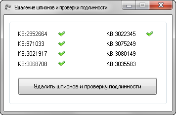 - Не были интегрированы следующие обновления телеметрии и обновления до Windows 10 (обновления скрыты и более загружаться не будут):