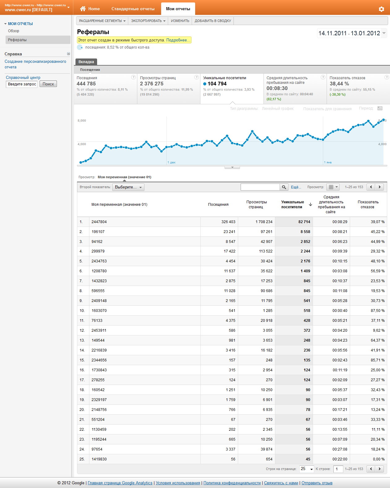 Отчет в системе Google Analytics за весь период проведения конкурса: