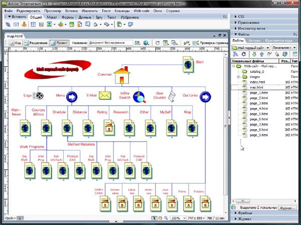 • Макет карты сайта. Настройка вывода файлов панелью Файлы