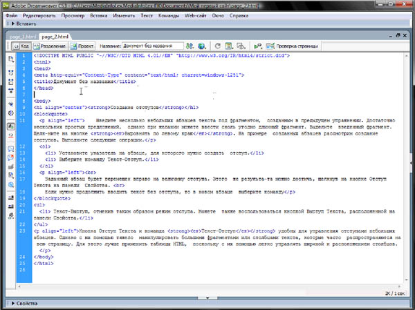 • Создание первой страницы. Настройка свойств страницы
